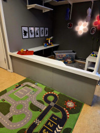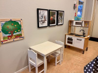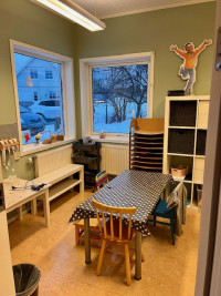 Mellan avdelningarna finns vårt kök där alla barnen på Äpplet intar sin lunch samt mellanmål. Här finns det även utrymme för dem, under den fria leken, att spela spel, leka med lera samt bygga och konstruera med olika material. Vi har även möjlighet att projektera filmer, foton, bilder, där barnen har möjlighet att se hur det t ex ser ut hos fiskarna i havet.