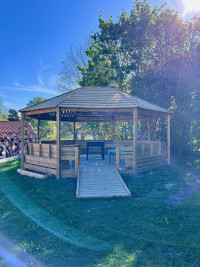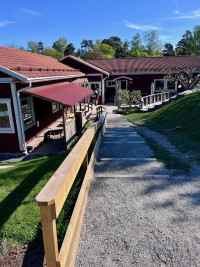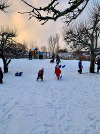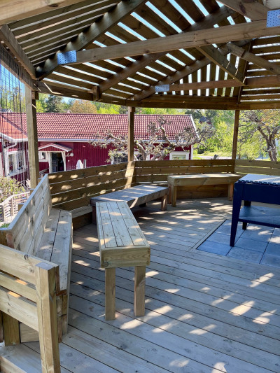 Vi är väldigt stolta över vår fina gård och alla de möjligheter den ger barnen i deras utveckling. Här finns plats för spring i benen, utmaningar för alla motoriska övningar, bollar och fotbollsmål, lekstuga, rutschkana, sandlåda, gungor, buskar, äppelträd och mycket mer.